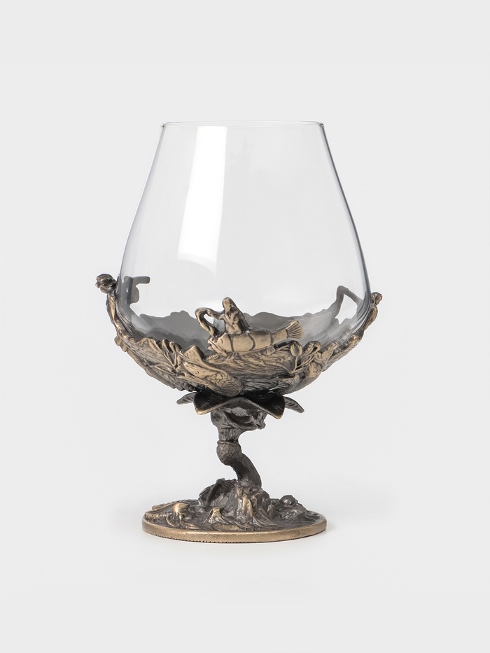 Бокал для коньяка 550 мл "Рыбалка", подарочный, бронза