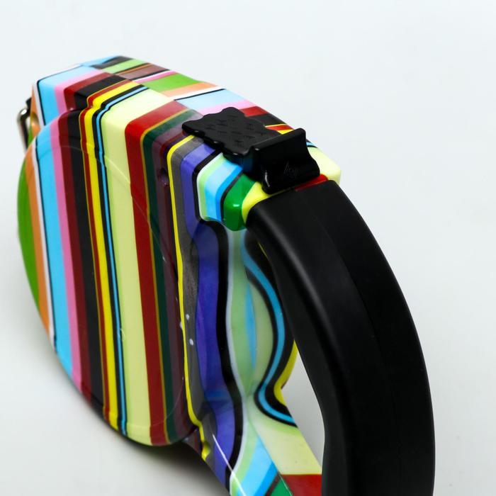 Рулетка с поводком-лентой, резиновая ручка, 5 м, вес животного до 15 кг, полосатая