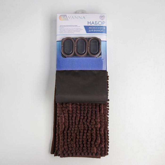 Набор для ванной «Комфорт»: штора 180×180 см, ковёр 40×60 см, цвет коричневый