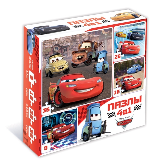 Пазлы 4 в 1 "Ни дня без гонки", Тачки