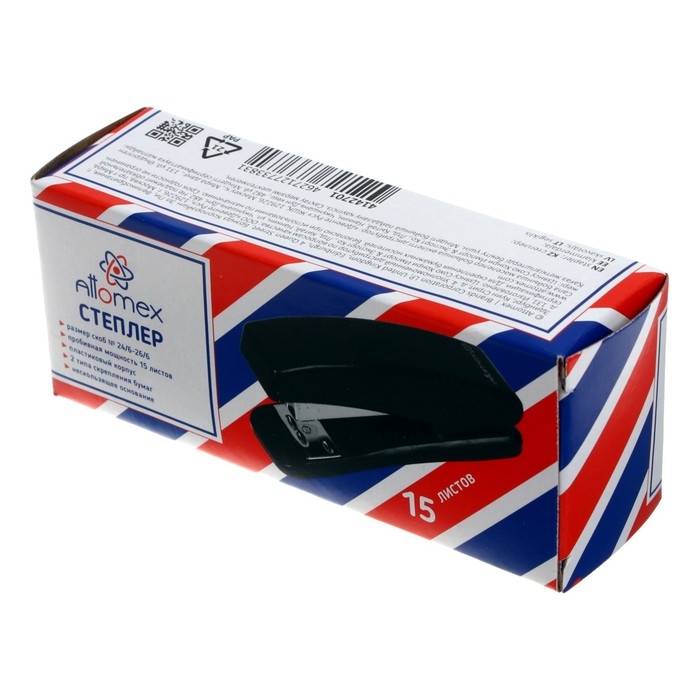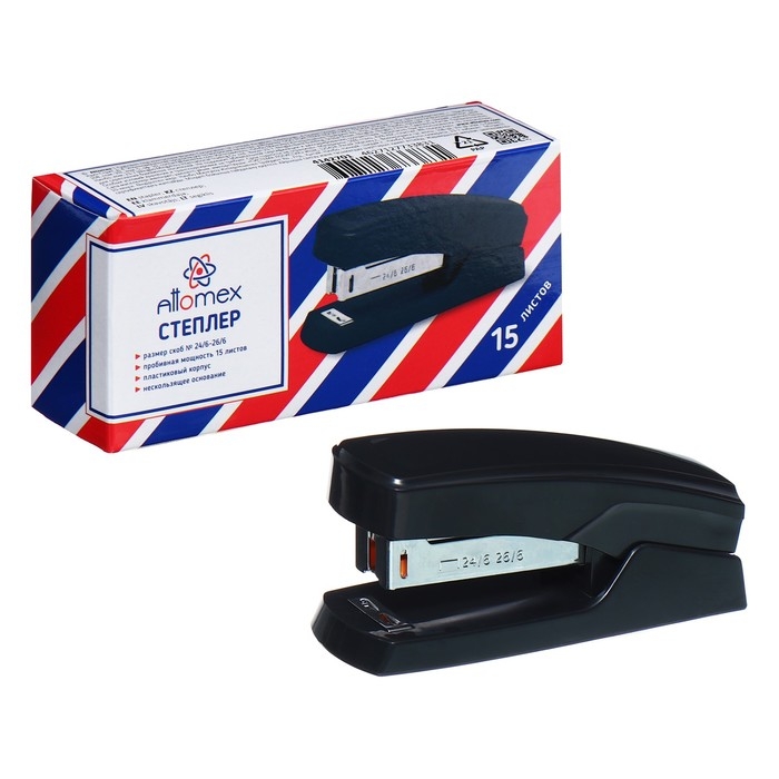 Степлер № 24/6 и 26/6, до 15 листов, Attomex, чёрный