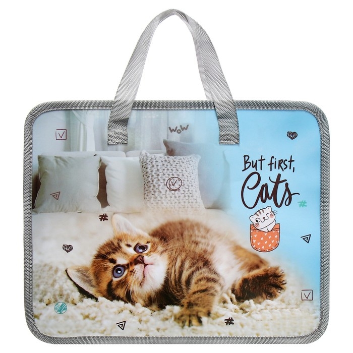 Папка с ручками пластиковая А4 Calligrata "Котёнок", 32,2х25,6х7 см,