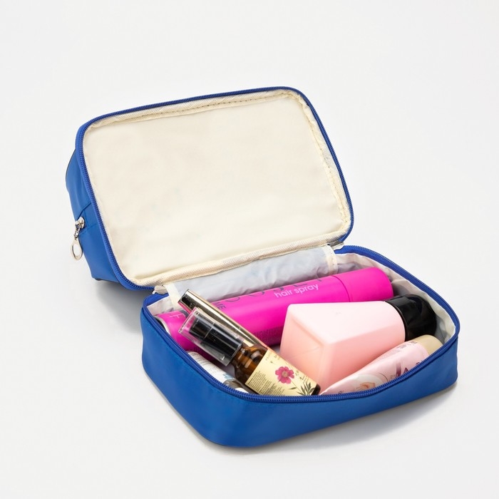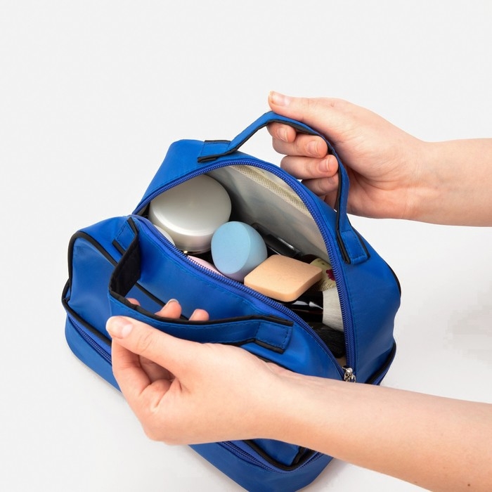 Косметичка, 2 отдела на молниях, цвет синий