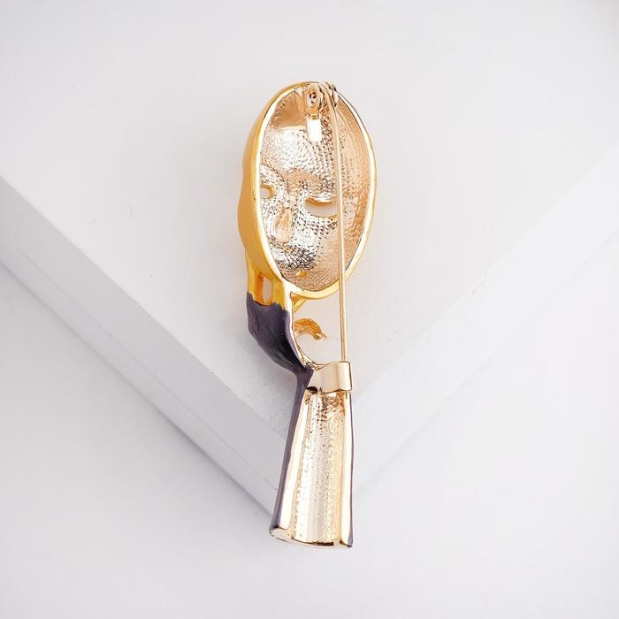 Брошь «Маска» личности, цвет чёрный в матовом золоте