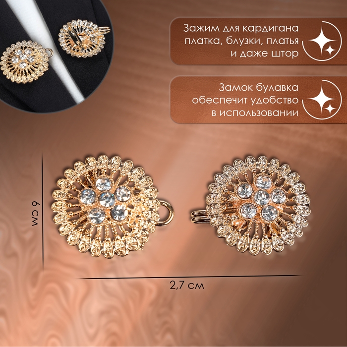 Зажим для кардигана - изысканный аксессуар, в том числе на поверхности платья, шали или свитера, данный элемент можно использовать даже для штор. Зажимы актуальны как в повседневном так и праздничном образе, добавляют очарования вашей одежде при сочетании различных нарядов.