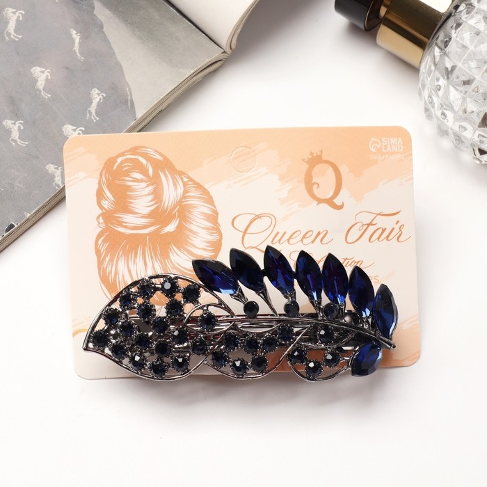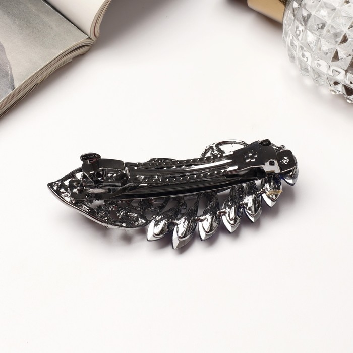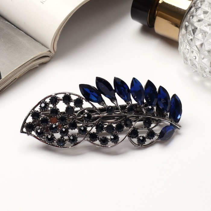Заколка-автомат для волос "Синий туман" драгоценный листок, 9 см