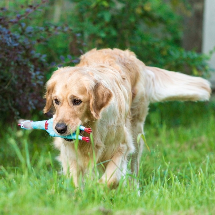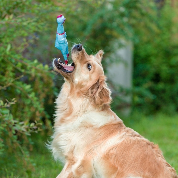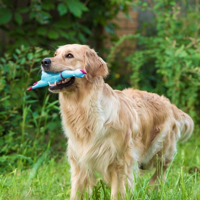 Игрушка изготовлена из безопасного материала и не предназначена для разгрызания. Во время игр виниловые игрушки можно жевать, благодаря этому они массируют дёсны и отчищают зубы собаки от налёта. Таким образом во время игр совмещается приятное с полезным.