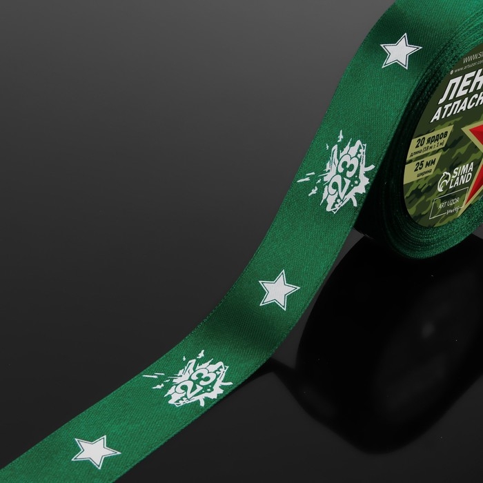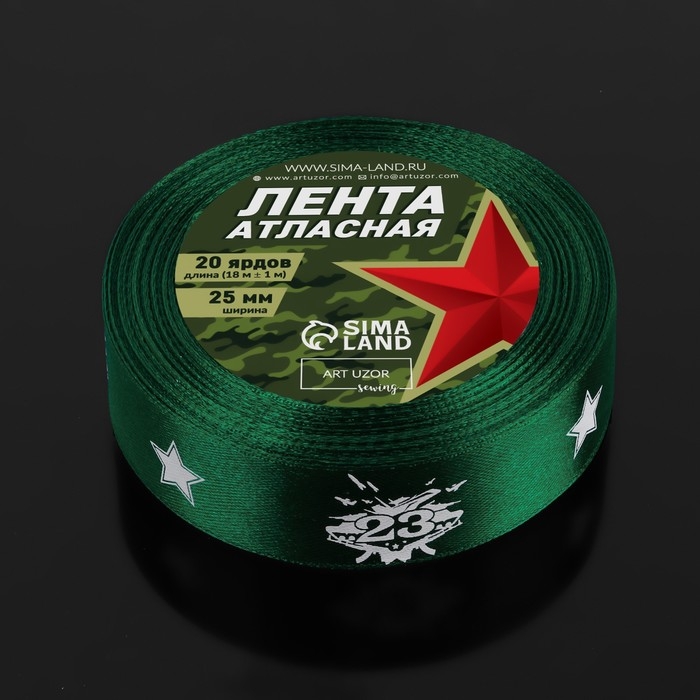 Лента атласная «23 февраля», 25 мм × 18 ± 1 м, цвет зёленый