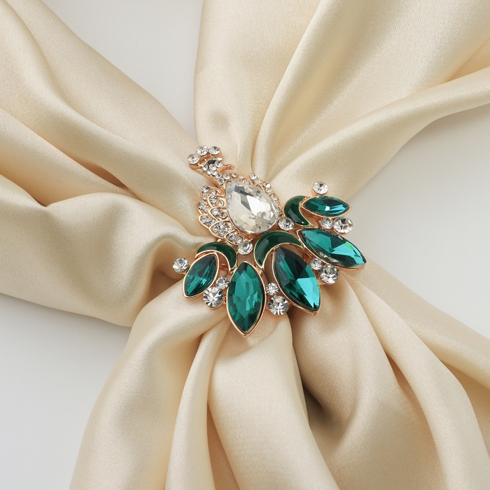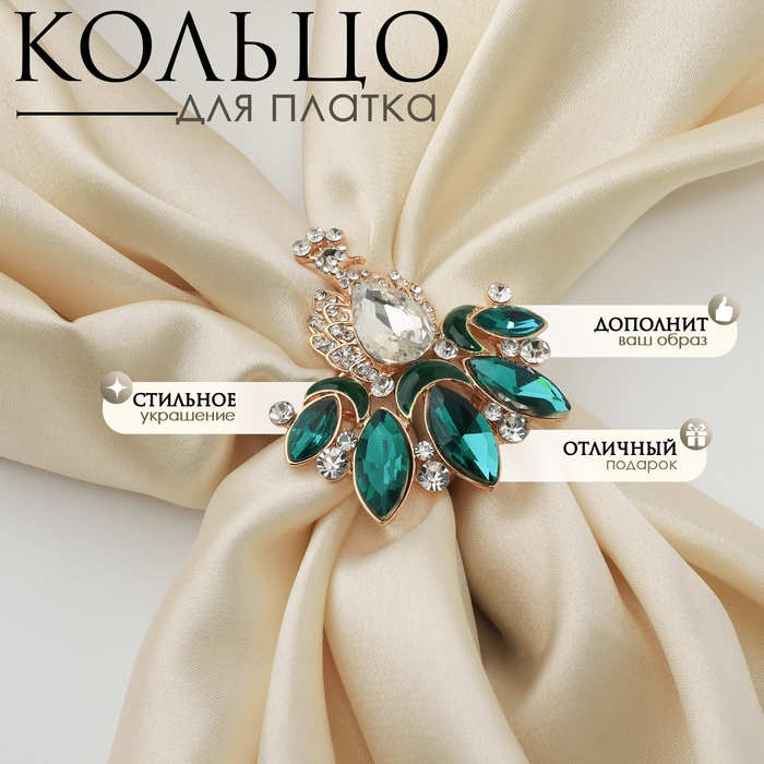Кольцо для платка «Павлин», цвет бело-зелёный в золоте