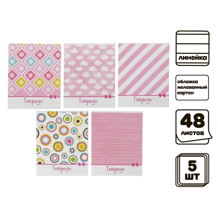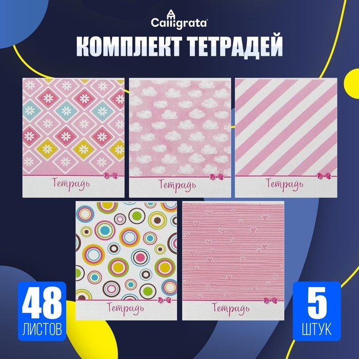 Комплект тетрадей из 5 штук, 48 листов в линию Calligrata "Узоры", обложка мелованный картон, блок офсет