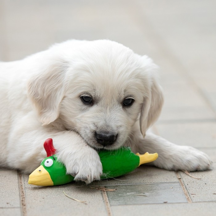 Игрушка пищащая помогает собаке снять стресс, если хозяина нет дома, массирует десна, а также способствует формированию правильного поведения у собаки.