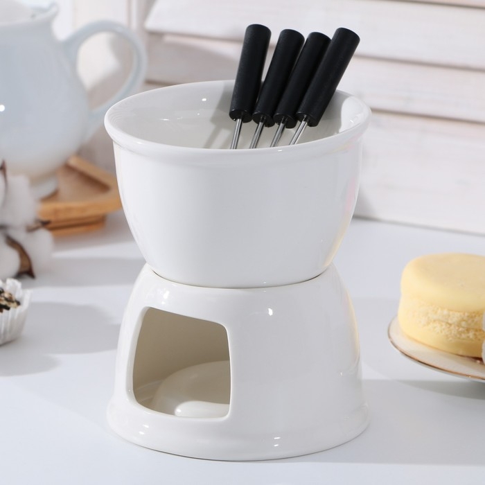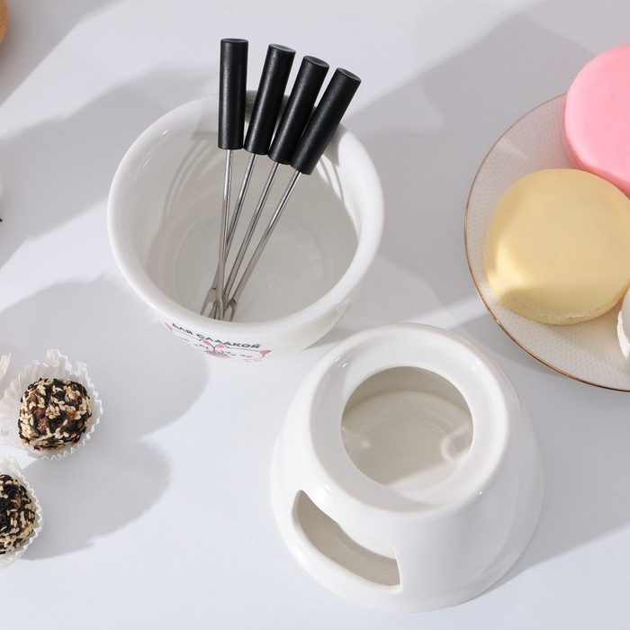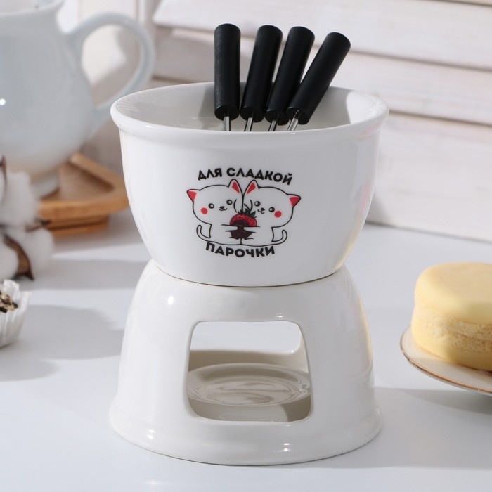 Фондюшница керамическая «Для сладкой парочки», 350 мл, цвет белый