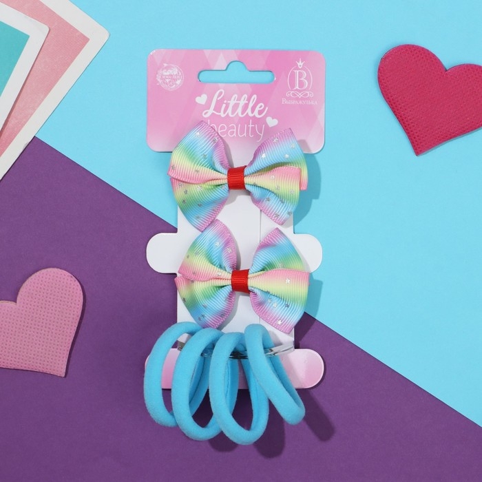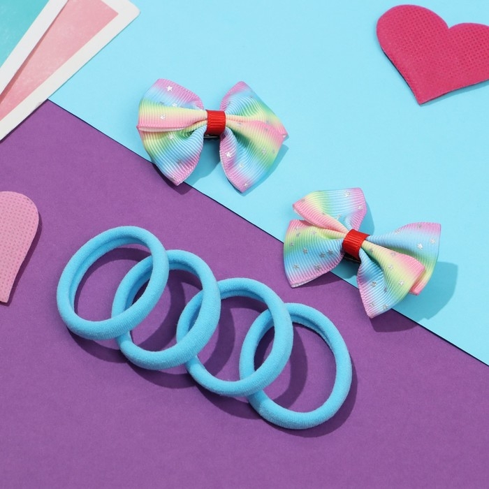 Набор для волос "София" (4 резинки, 2 зажима) бантик радуга блеск