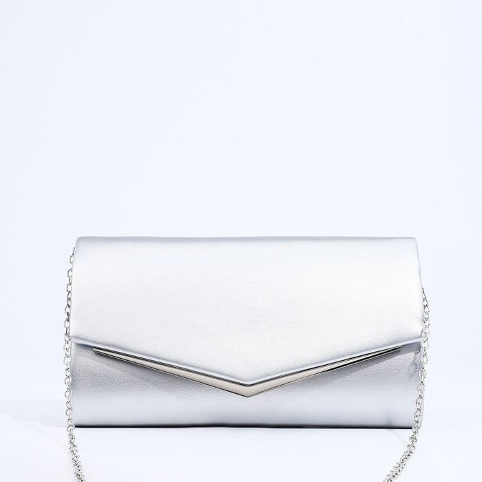 Сумка-клатч на магните, цвет серебряный