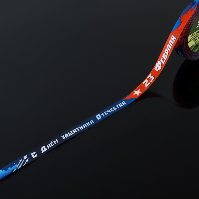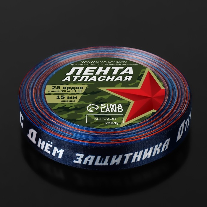 Лента атласная «С Днём защитника Отечества!», 15 мм × 23 ± 1 м, цвет синий