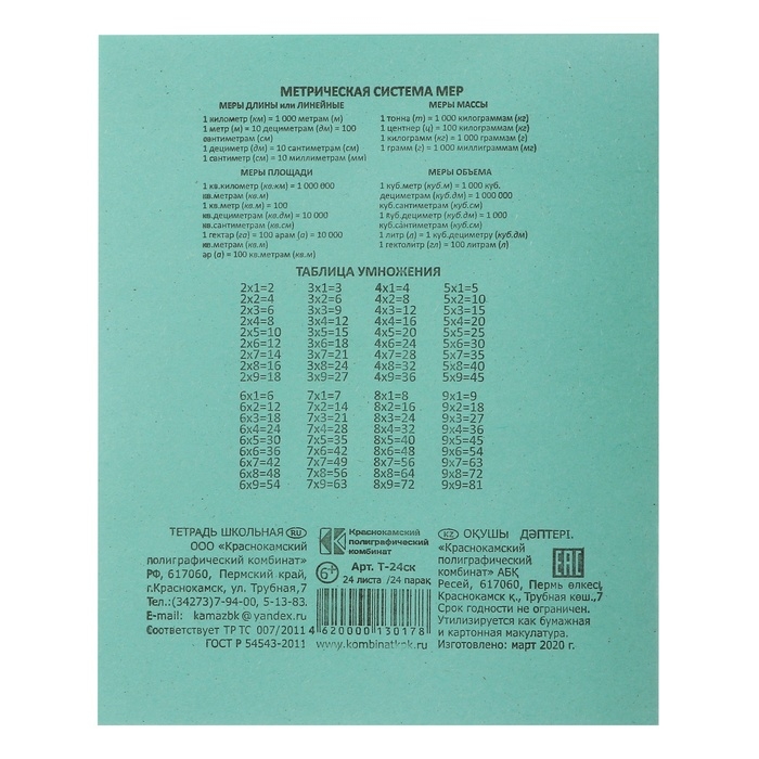 Комплект тетрадей из 20 штук, 24 листа в клетку КПК "Зелёная обложка", 60 г/м2, блок №2, белизна 75% (серые листы)