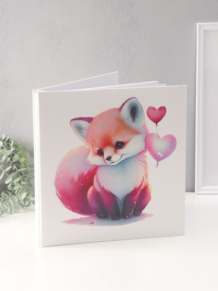 Фотоальбом магнитный 20 листов "Лисёнок с сердечками" кожзам, в коробке 2,6х32х33,5 см