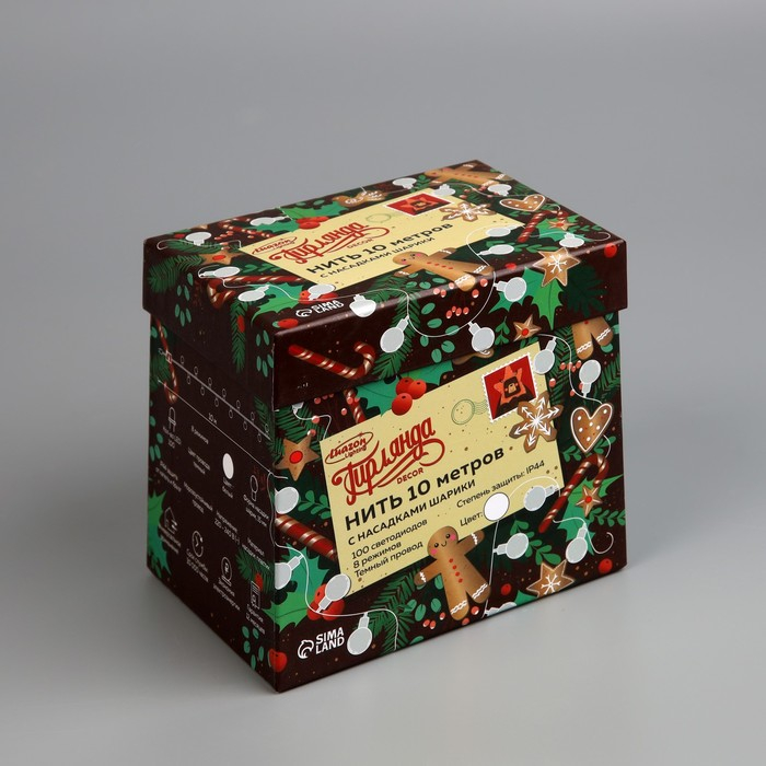 Гирлянда «Нить» 10 м с насадками «Шарики 1.5 см», IP44, тёмная нить, 100 LED, свечение белое, 8 режимов, 220 В