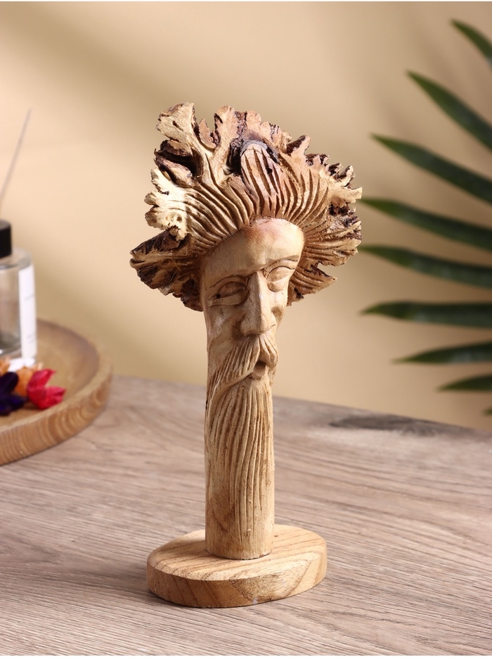 Скульптура "Лицо старца" дерево Камал, 8х6х22 см, бежево-коричневый