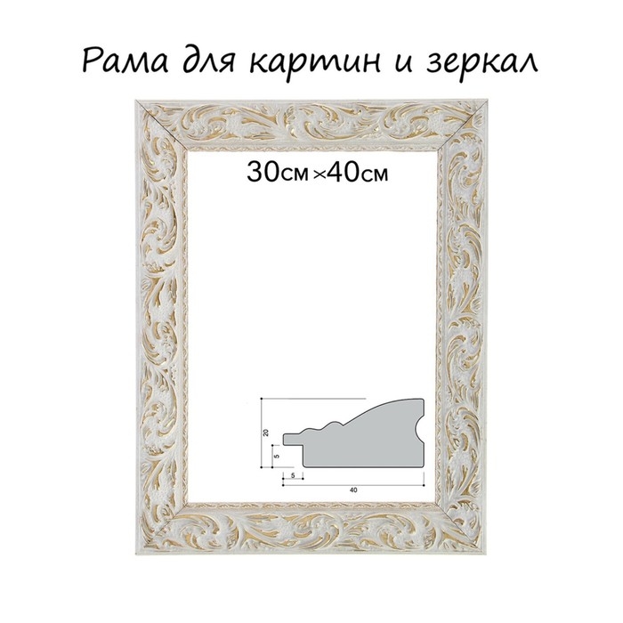 Рама для картин (зеркал) 30 х 40 х 4 см, дерево "Версаль", бело-золотая