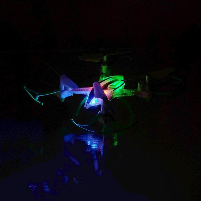 Квадрокоптер SKYDRONE — это стильный аппарат для покорения неба. Он идеально подойдёт для развлечений в сухую безветренную погоду. А благодаря встроенной подсветке летать можно даже в тёмное время суток.