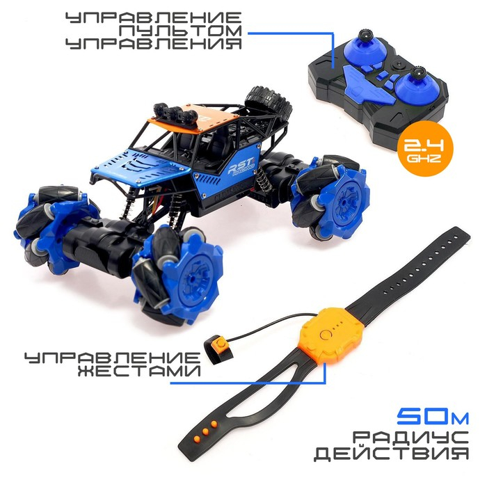 Машина радиоуправляемая «Джип-акробат», 4WD, управление жестами, работает от аккумулятора, цвет синий