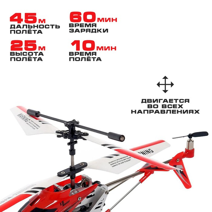 Вертолёт радиоуправляемый «Воздушный король», работает от аккумулятора, цвет красный