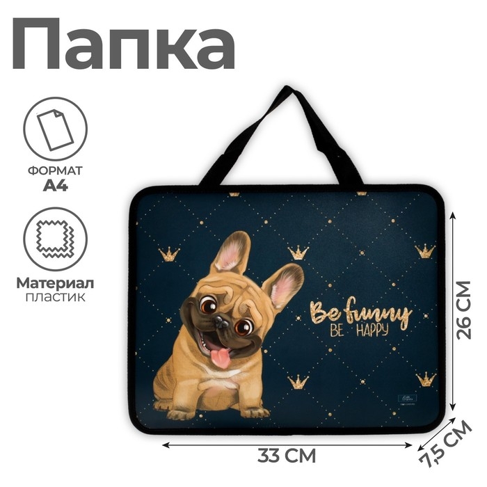 Папка с ручками А4, 330 х 260 х 75 мм, пластиковая, ручки-тесьма, Calligrata "Бульдог"