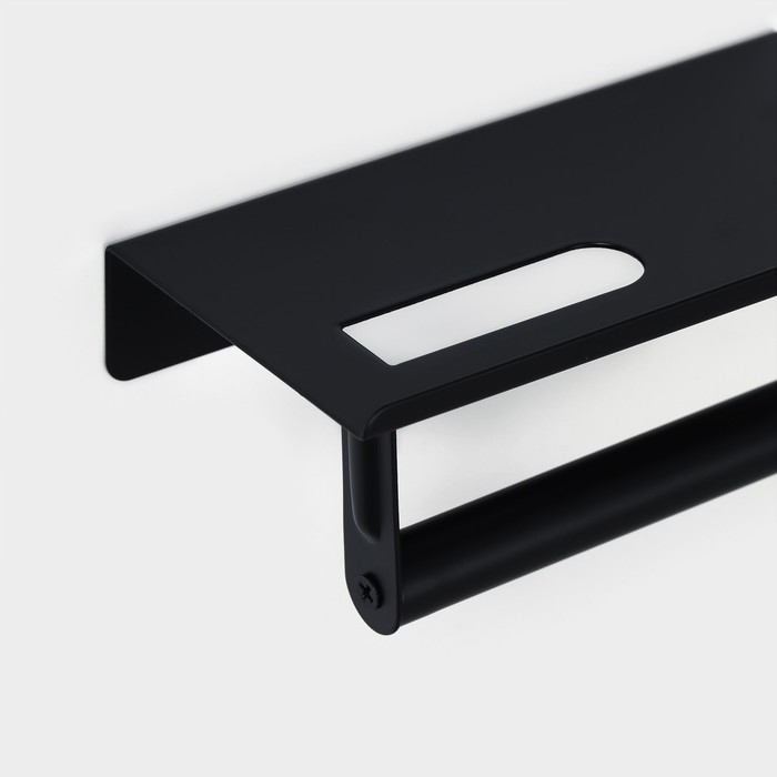 Держатель для туалетной бумаги с полочкой, 18×9,7×7,5 см, цвет чёрный