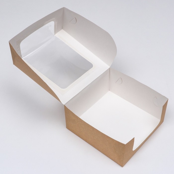 Кондитерская упаковка с окном, крафт, 23,5 х 23,5 х 11,5 см