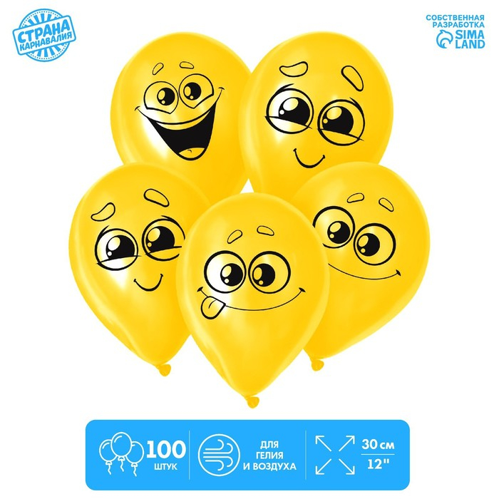 Воздушный шар латексный 12" «Улыбки мордочки», 100 шт., МИКС
