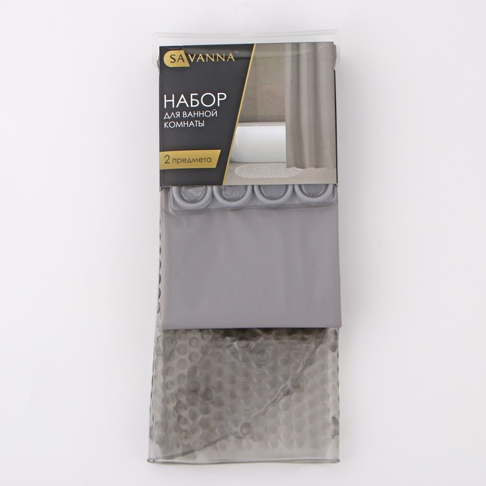 Набор для ванной SAVANNA «Селест»: штора 180×180 см, ковёр 38×69 см, цвет серый