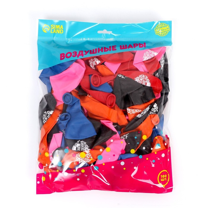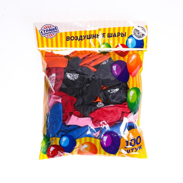 Воздушный шар латексный 12" «С днём рождения», корона, 100 шт., МИКС