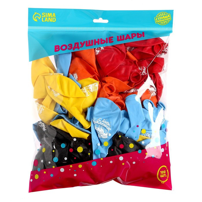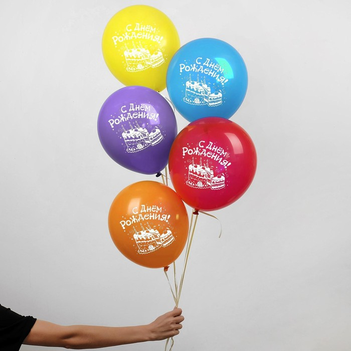 Воздушный шар латексный 12" «С днём рождения», торт, 100 шт., МИКС