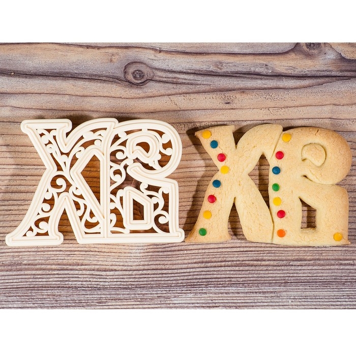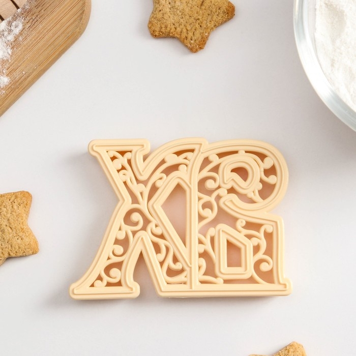 Форма для печенья на Пасху «ХВ», вырубка, штамп, цвет бежевый