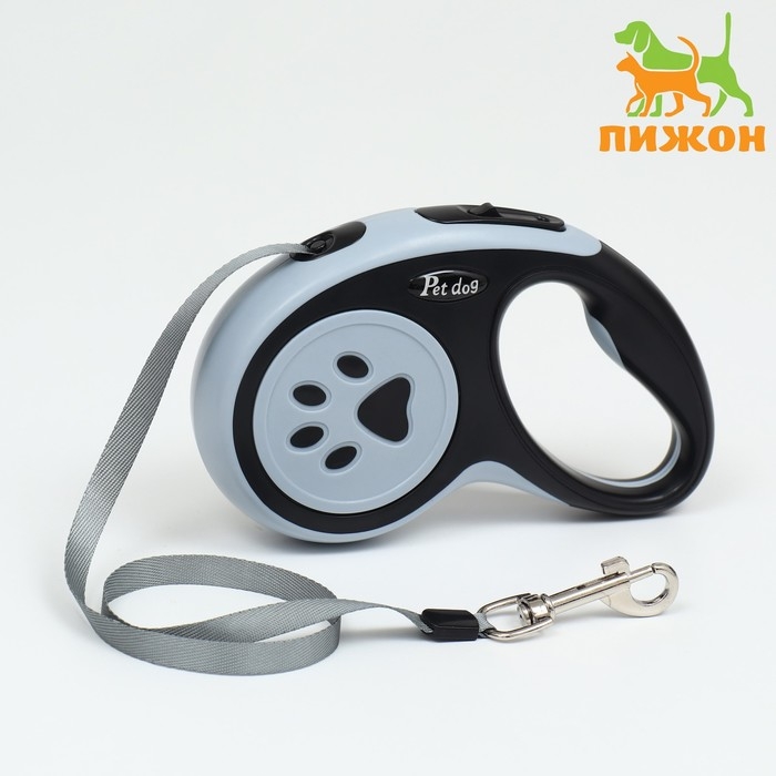 Рулетка имеет длину 5 метров и выдерживает нагрузку до 15 кг, что позволяет использовать ее для большинства пород собак и кошек.