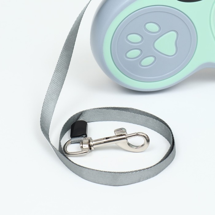 Рулетка имеет длину 5 метров и выдерживает нагрузку до 15 кг, что позволяет использовать ее для большинства пород собак и кошек.