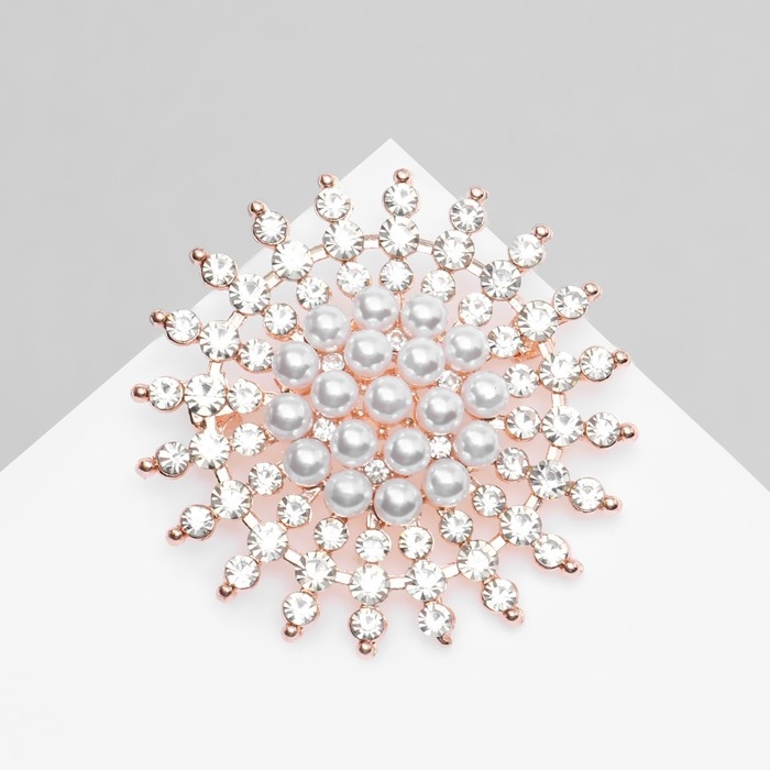 Брошь «Жемчужное сияние», цвет белый в розовом золоте