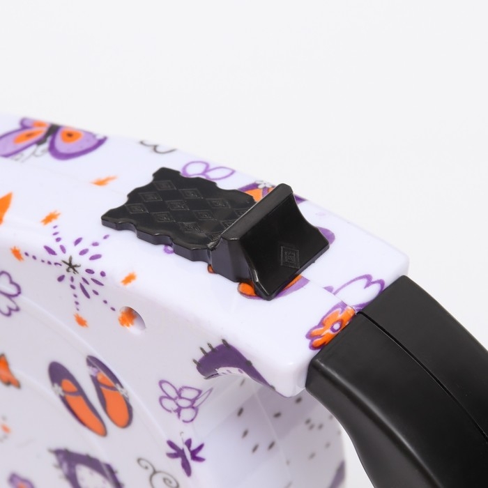 Рулетка с поводком-лентой, резиновая ручка, 5 м, вес животного до 15 кг, узоры на белом