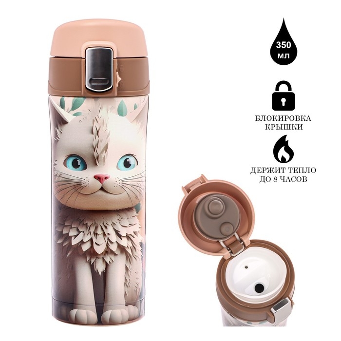 Термокружка, 350 мл, Style, "Котенок", сохраняет тепло до 8 ч