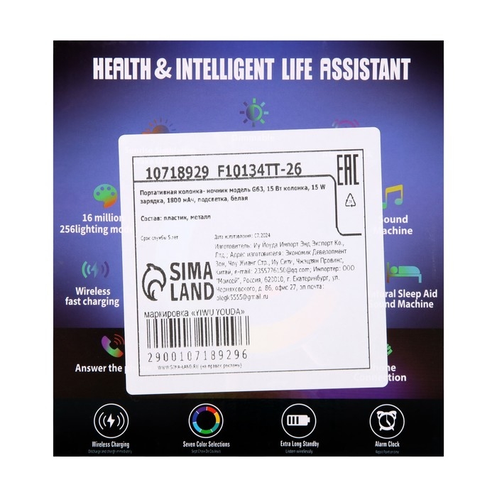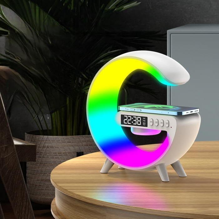 Портативная колонка- ночник G63, 15 Вт колонка, 15 W зарядка, 1800 мАч, подсветка, белая