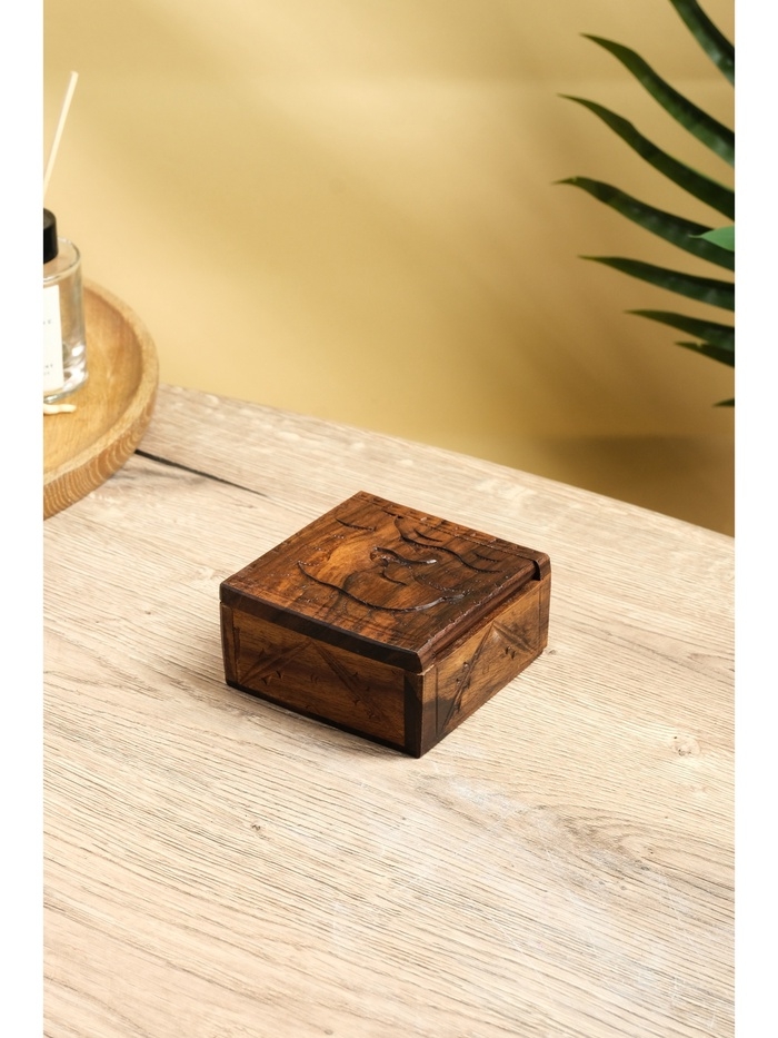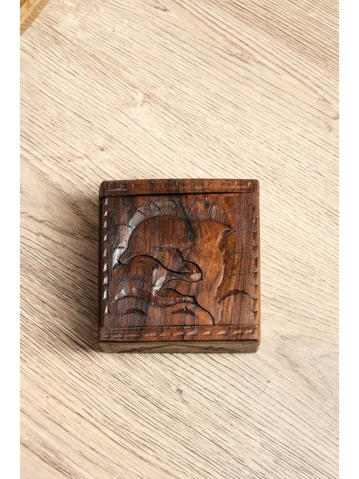 Шкатулка резная "Дельфин" дерево соно, 10х10х5 см