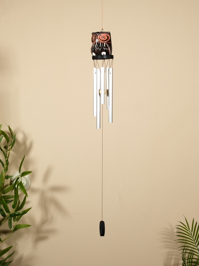 Музыка ветра "Совёнок" дерево, алюминий, 7х6х60 см, цв. чёрный