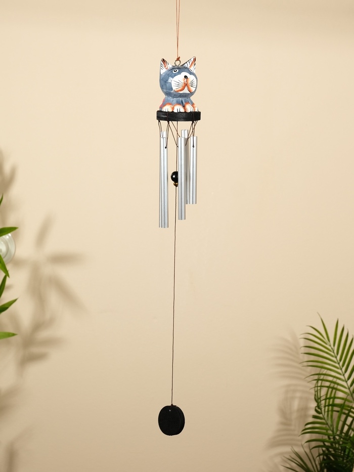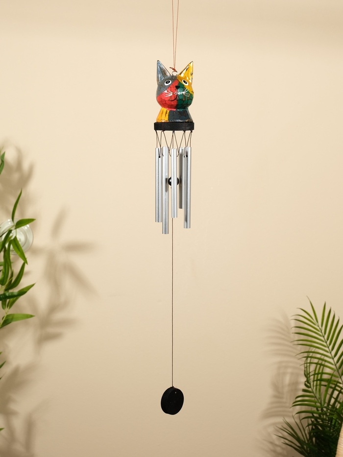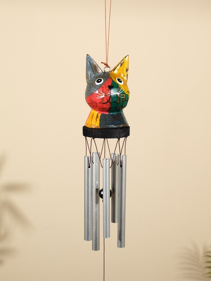 Музыка ветра "Кот" дерево, алюминий 8х8х80 см, МИКС