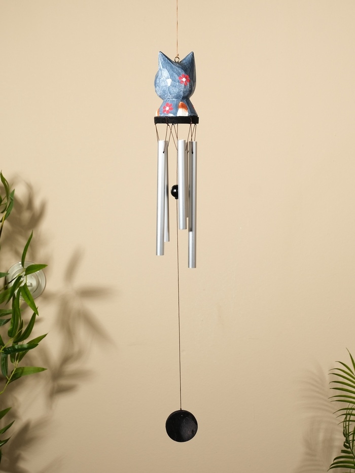 Музыка ветра "Кот" дерево, алюминий 9х8х100 см