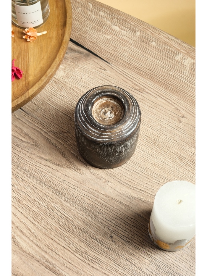 Подсвечник из дерева Джати, d 3 см, 8х8х10 см, цв. темно-коричневый