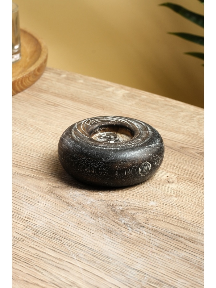 Подсвечник из дерева Джати, d 3 см, 10х10х3 см, цв. темно-коричневый
