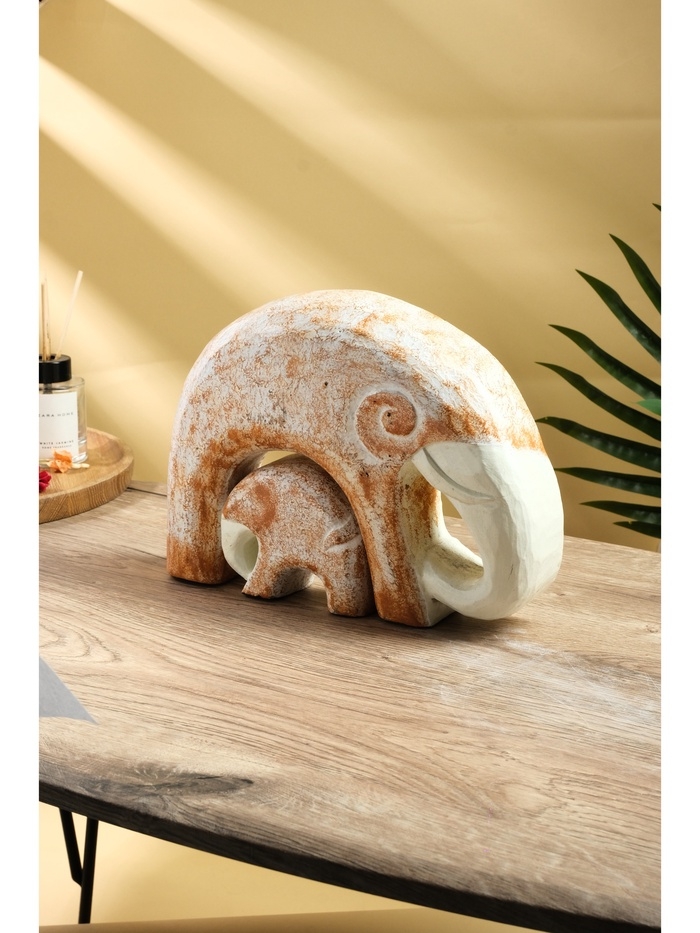 Сувенирный набор "Слониха со слоненком" дерево Албезия, 24х5х18 см, бело-коричневый