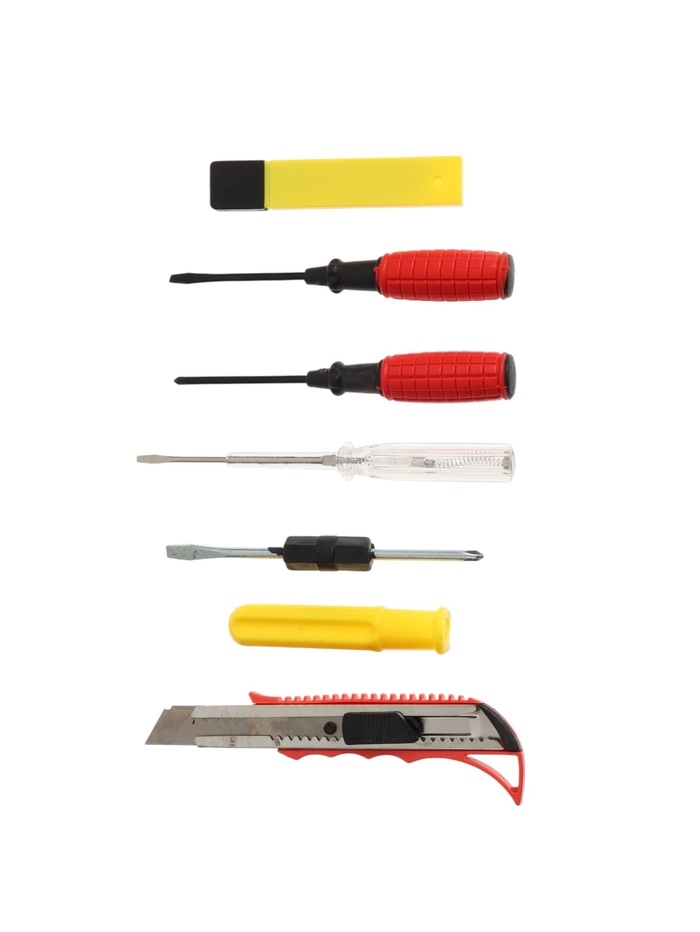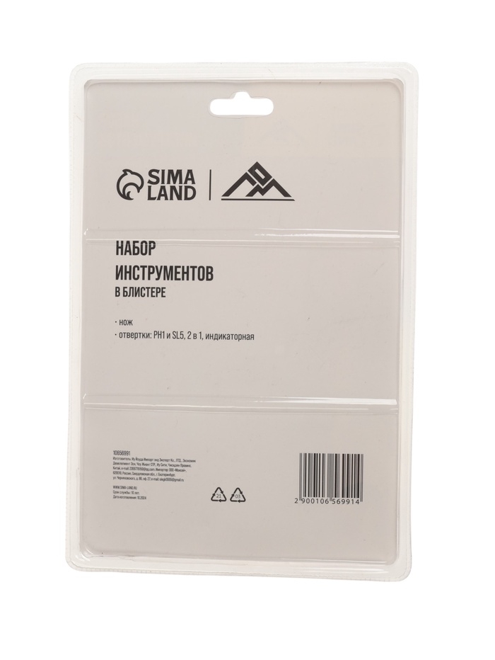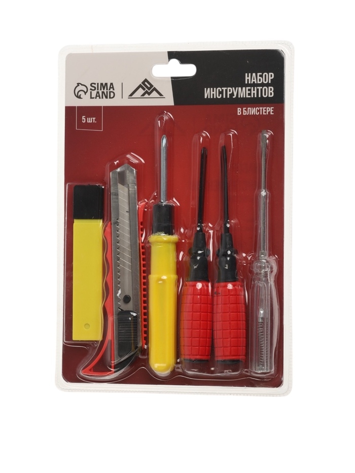 Набор инструментов в блистере ЛОМ, нож, отвертки PH1 и SL5, 2 в 1, индикаторная, 5 шт.