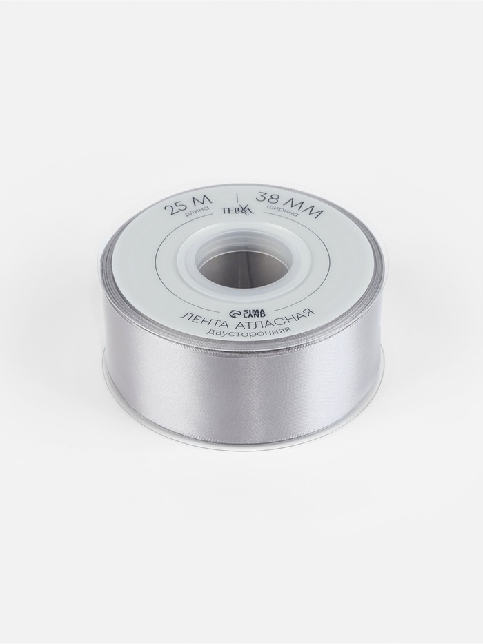 Лента атласная двухсторонняя №837 38мм*25±1м серебряный TR